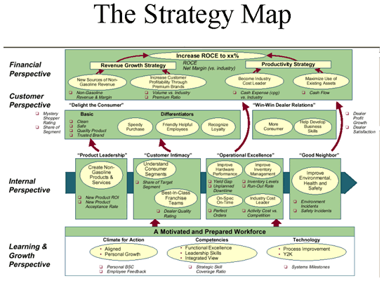 The Balanced Score Card is a framework for integrating measures derived from strategy. While retaining financial measures of past performance, the Balanced Score Card introduces the drivers of future financial performance. (Figure 1) The drivers (customer, internal business process, learning & growth perspectives) are derived from the organization’s strategy translated into objectives and measures.