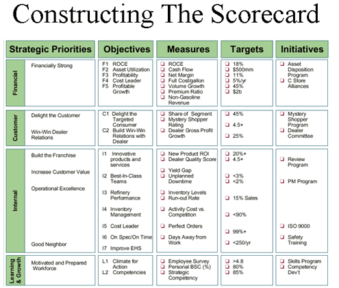 The best Balanced Score Cards consist of a series of objectives and measures with linkages incorporating both cause-and-effect relationships and a mixture of outcome measures and performance drivers.