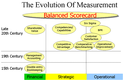 When one attempts to view the evolution of various measurement systems you could see that Balanced Score Card encompasses Financial, Strategic and Operational measurements. See (Figure 5). It is clear to visualize that implementation of Balanced Score Card followed by the deployment of Six Sigma is a better approach towards Six Sigma deployment. While the proven statistical tool set of Six Sigma operates at the operational level the Balanced Score Card provides the rationale for identification of areas for improvement .